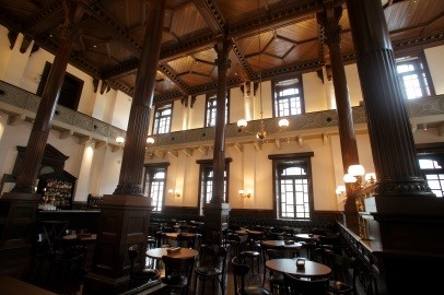 三菱一号館美術館 「Café 1894」は、かつて銀行営業室として利用されていた場所です。この空間の復元にあたっては、1894(明治27)年の三菱一号館竣工時に撮影されたと思われる写真の他、図面、保存部材から、可能な限り忠実な復元を目指しました。クラシカルな店内は、TVや雑誌などの撮影にもよく使用されています。