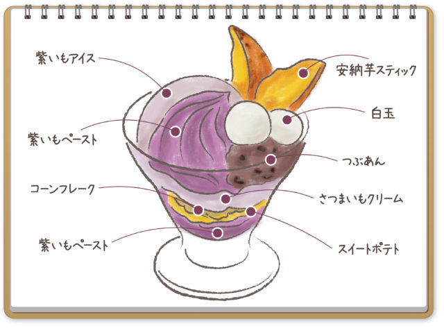 見た目もかわいい、いろいろな “おいもスイーツ” が楽しめる、おいもづくしの和パフェです。