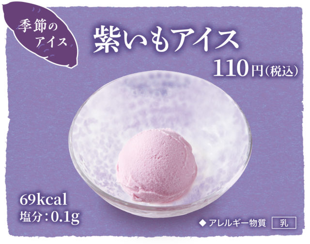 紫いもペーストや、スイートポテト、さつまいもクリームが、すっきりした甘さの紫いもアイスと相性抜群です。