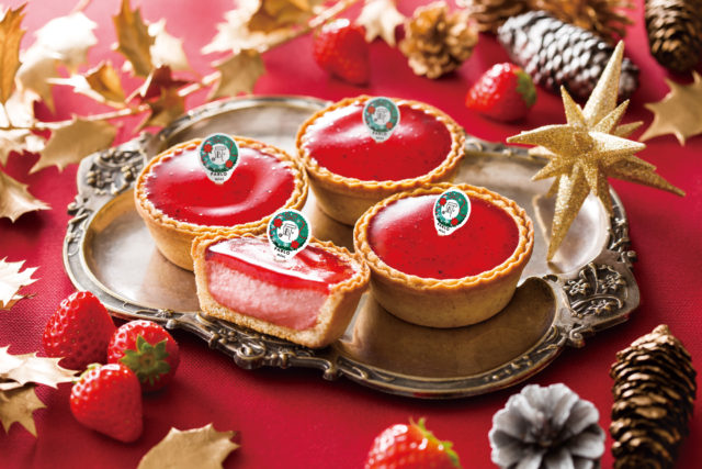 その上からさらにいちごピューレを重ね、美しい2層仕立てに作られており、つぶつぶとしたいちごの種の食感とキュンとするような甘酸っぱい香りが広がる、”ダブルいちご”な美味しさのチーズタルトです。クリスマスリースをイメージした、このチーズタルトだけのスペシャルピックで販売します。