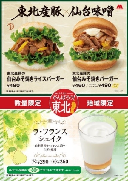 昨年末、東北産食材を使用した東北地域限定の「東北産豚の仙台みそ焼きバーガー」(460円)と「東北産豚の仙台みそ焼きライスバーガー」(490円)を発売したところ、想定された販売期間より約2週間早く終売となり、大変好評を得ました。