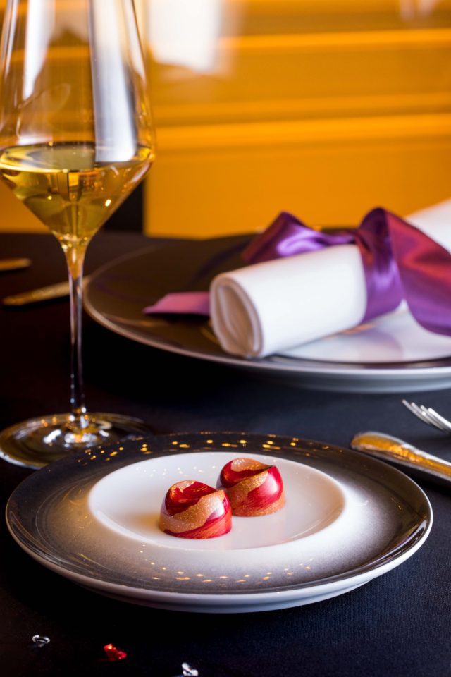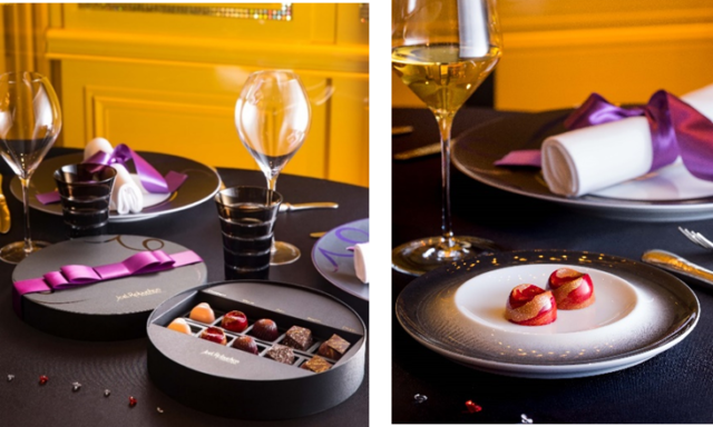 さらにガストロノミー “ジョエル・ロブション”のプレゼンテーションプレートから着想を得たボックスには、レストランのテーブルセッティングを彷彿とさせる紫色のリボンがデザインされています。見た目、味共に自宅にいながらにして、ガストロノミー “ジョエル・ロブション”を感じられるボンボンショコラとなっています。