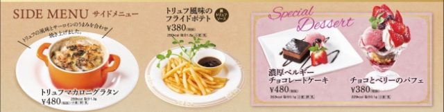 トリュフ風味のサイドメニューと、苺を使用したデザートが用意されています。