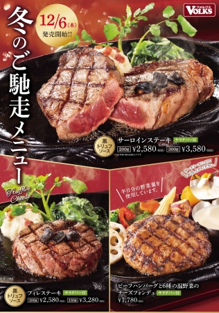 株式会社アークミールが運営する「ステーキハウス フォルクス」にて、来る2018年12月6日(木)から『冬のフェアメニュー』の販売を期間限定で開始します。
