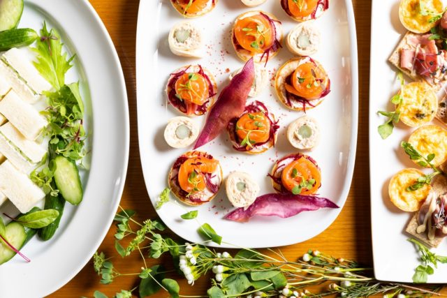 - スモークサーモン ビーツ ディルクリーム ブリニス