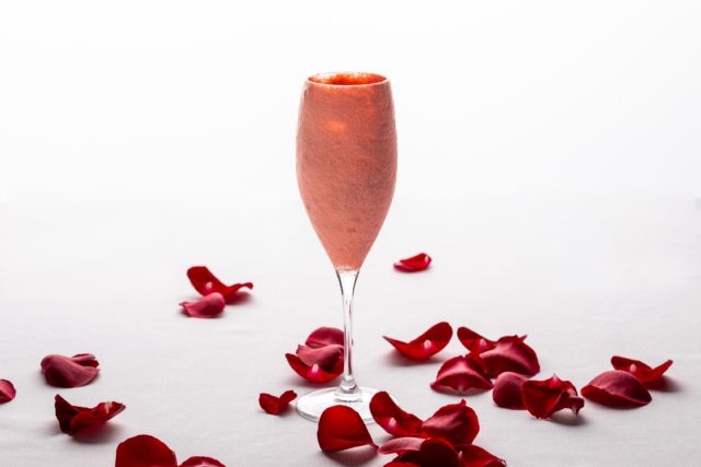 大切な人へ贈るバラをイメージしたドリンク。ヨーグルトとチョコレートをつかったシェイクのグラスの周りにストロベリーパウダーをあしらった、ロマンティックな夜を彩るデザート感覚のドリンクとなっています。