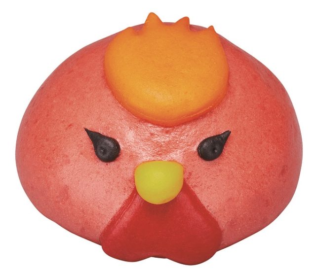 商品特徴:ピリ辛ソースで味付けした鶏肉を、「からあげクン レッド」のイメージキャラクターの姿を模したふっくらとした口どけの良い生地で包み込みました。