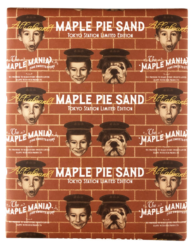 東京駅丸の内駅舎の赤レンガと、駅長帽子をかぶったメープル坊やがかわいい東京駅らしいパッケージデザインにも注目となっています。