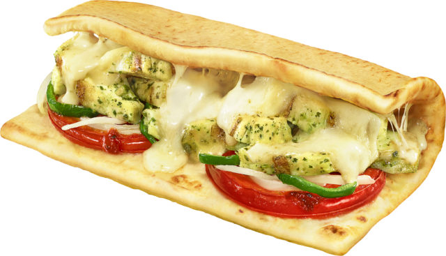 もちもちの「フラットブレッド」に、ボリュームたっぷりの「バジルチキン」、上品でスモーキーな味わいが特徴のイタリア産「スモークモッツァレラチーズ」、仕上げにトマトソースを合わせたチーズ好きにはたまらないホットサンドです。チーズ・チキンと一緒に、「トマト・ピーマン・オニオン」3種類の野菜もトーストしています。冬に嬉しいホットなサンドイッチにこだわっています。
