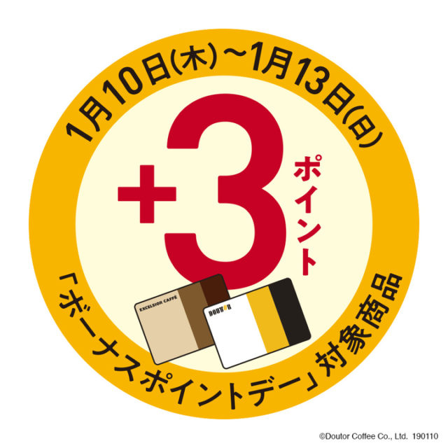 1月10日(木)~13日(日)の4日間、ドトール バリューカードで対象の新商品(ジンジャーハニーラテ)を購入すると、商品ごとにボーナスポイント3ポイントをもれなくプレゼントします。期間中は何度でも利用でき、ポイントは即日付与されます。 おトクに新商品を試すチャンスとなっています。