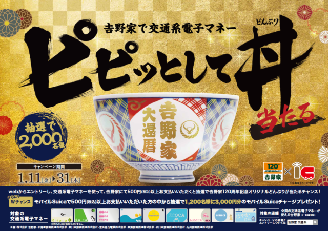 「吉野家で交通系電子マネー ピピッとして丼(どんぶり)当たる」キャンペーン