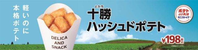 ミニストップ株式会社は、北海道十勝産“ホッカイコガネ”を使用した「十勝ハッシュドポテト(税込:198円)」を、2019年1月11日(金)より順次(※)、国内のミニストップ(2018年12月末現在:2,198店)にて発売します。