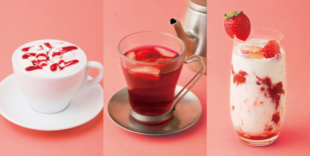 苺づくしのフェアにふさわしいストロベリードリンクを用意します。