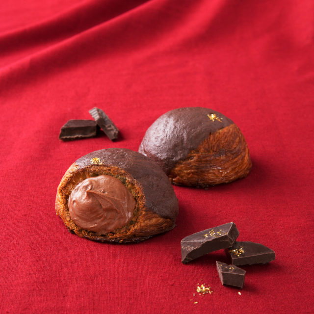 こんがり二度焼きのチョコレートと、キャラメリゼしたシュークロワッサン生地。2つの食感のコントラストが革新的な生地から、濃厚なショコラクリームがあふれます。