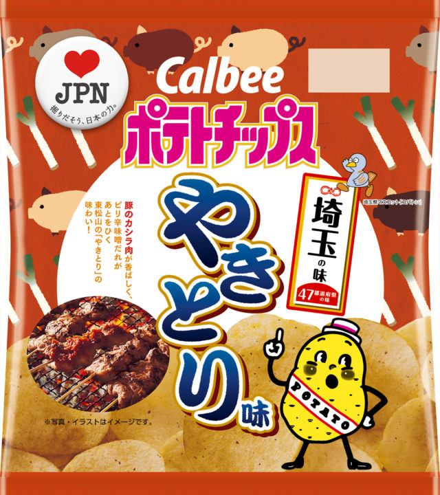 カルビー株式会社は、埼玉県東松山市発祥の豚肉を使用した「やきとり」の味わいを再現した『ポテトチップス やきとり味』を数量限定・期間限定で2019年3月4日(月)、埼玉・茨城・栃木・群馬・千葉・東京・神奈川・山梨 (8都県)で発売します。また、カルビー直営店及びアンテナショップでも随時、販売予定です。商品は無くなり次第終了となります(4月下旬終売予定)。