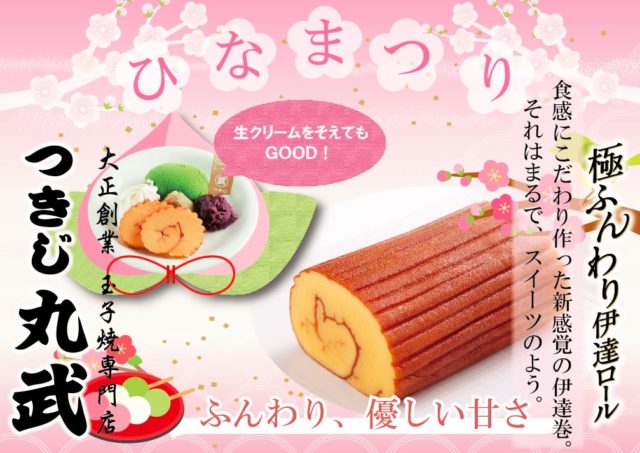 つきじ丸武の販売総代理店である株式会社アイフーズは、年末限定で販売した伊達巻が大人気を博した為、2019年3月ひな祭り限定で一部店舗を除くイトーヨーカ堂や全国のスーパーで再販売します。