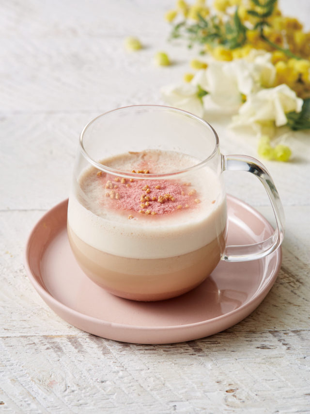 商品説明:アフタヌーンティーで人気のチャイをカプチーノ仕立てにし、相性のよいあずきを加え、桜の香りをほんのりきかせた春限定デザートティーとなっています。