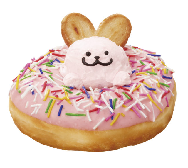 ストロベリーチョコでコーティングした生地からさくら味のウサギが顔を覗かせたドーナツ。 優しい甘さのいちごクリームがアクセントに効いた春らしい味わいです。