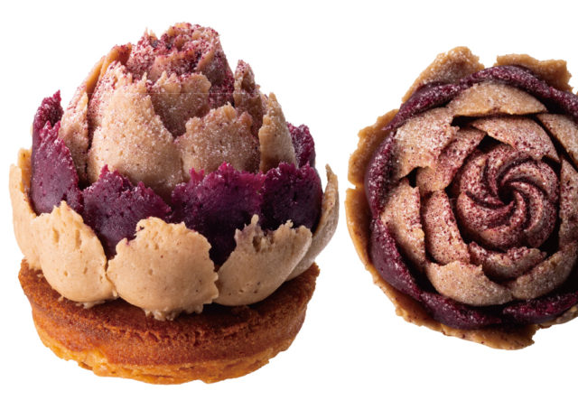まつぼっくりのように みっしり花びらを重ねた、バラのモンブラン。3ヶ国の栗の味わいを重ねて、濃密なコクを引き出しました。かくし味は甘酸っぱいカシス。栗とカシスはパリジェンヌが愛する組合せです。