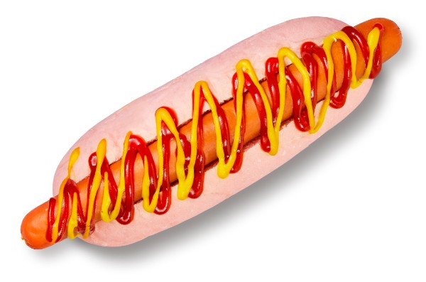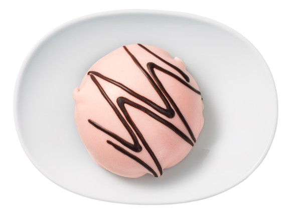 ピンク色のパンにソーセージ