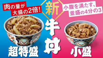 吉野家の牛丼に新サイズ『超特盛』と『小盛』が登場