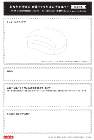 ②食べてみたいチョコパイのアイデア・商品名・コメント(応募するチョコパイを考えた理由)とチョコパイに対する想いを白紙・または応募ページからダウンロードできる応募用紙などに記載