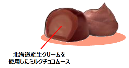 1. 北海道産生クリームを使用したふんわりとろけるミルクチョコムースを、ガーナチョコで包み込みました。