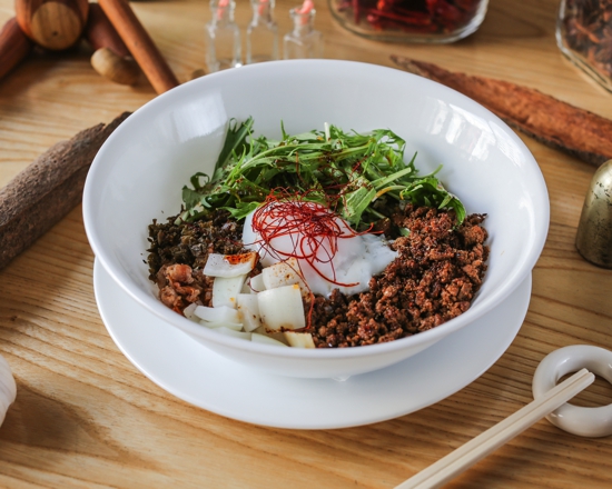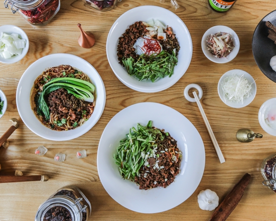 カウンター7席の落ち着いた雰囲気で自家製辣油の辛さ、花椒(中国山椒)の痺れが堪能できます。人形町店でも1番人気の汁なし担担麺白胡麻はもちろん、神田店のみのメニューとして胡麻ダレを使用しない辣油と醤油ベースの特製ダレの成都式担担麺も提供予定です。食器も有田焼の「arita jiki」を使い、味以外での心地良さを提供します。