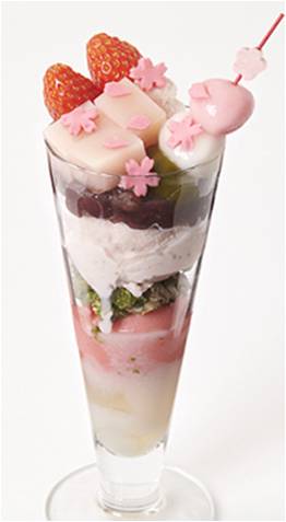 この春の新しい試み、甘酒(ノンアルコール)を使ったパフェが登場。甘酒さくらゼリーに桜アイス、いちごシャーベットやお団子などを盛り付け、桜をいっぱいに感じる仕上がり。