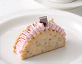 桜とマスカルポーネのクリーム&ピスタチオのムースを使ったケーキ。