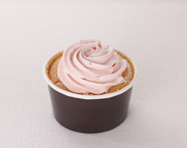ほんのりジャスミンの風味を感じるシフォンケーキにピーチホイップを飾りつけた、見た目にも可愛らしいカップケーキです。