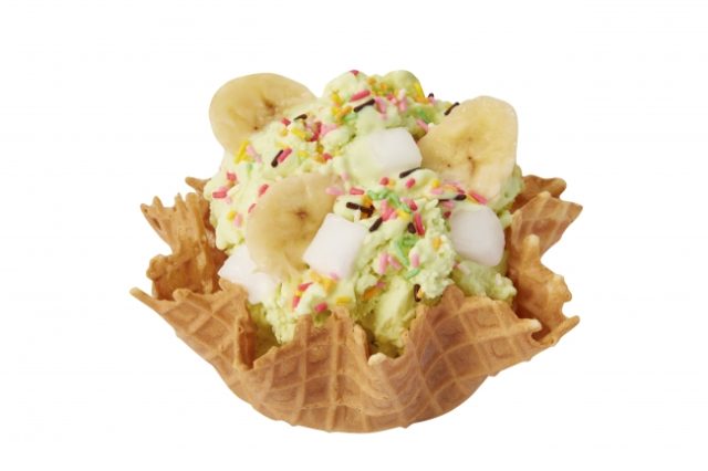 マスカットヨーグルトテイストアイスクリーム、バナナ、ナタデココ、レインボースプリンクル