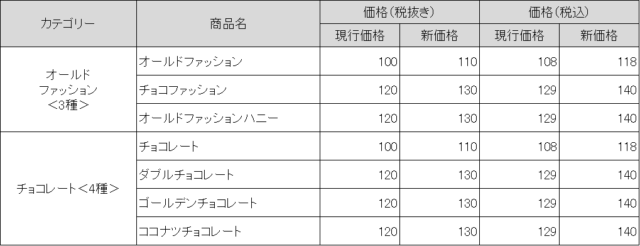 ミスタードーナツでは、お客がどの時間帯でも気軽に利用でき「しあわせな時間」を感じられるよう『いいことあるぞ ミスタードーナツ』のブランドスローガンのもと、“手づくり”“豊富な品揃え”に努めてきました。この度、2カテゴリー商品をさらにお客に満足感のあるドーナツへと改良し、価格を現在の価格から10円(税抜)改定します。