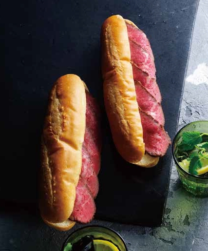 今月ニューオープンするベーカリー。一頭から2Kgしかとれない希少な赤身「トンビ」を自慢のバゲットでサンドして提供します。