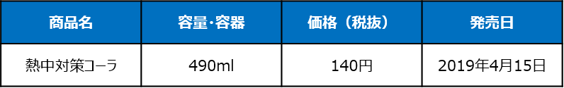 ⇒「熱中対策コーラ」はコーラ味の炭酸飲料で、あつさ対策に適した塩分を含むドリンクとなっています。