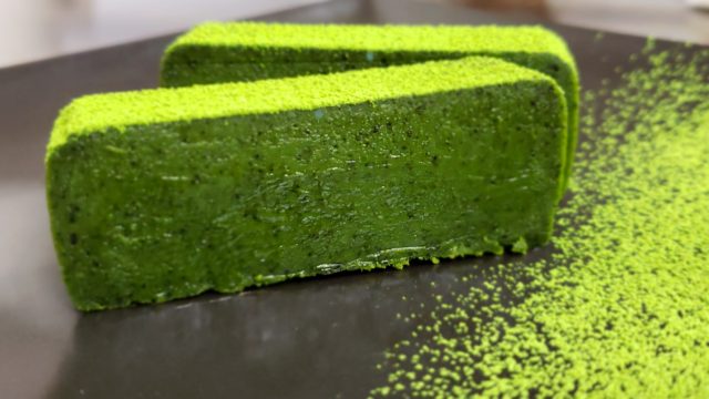 販売するテリーヌ一つ分に、お点前用の抹茶4杯分の抹茶を贅沢に使用しています。抹茶自体も1kg10万円の高級抹茶「出雲抹茶-premium-」を使用することで濃厚な風味があり、抹茶好きの人にも納得いただける商品となっています。