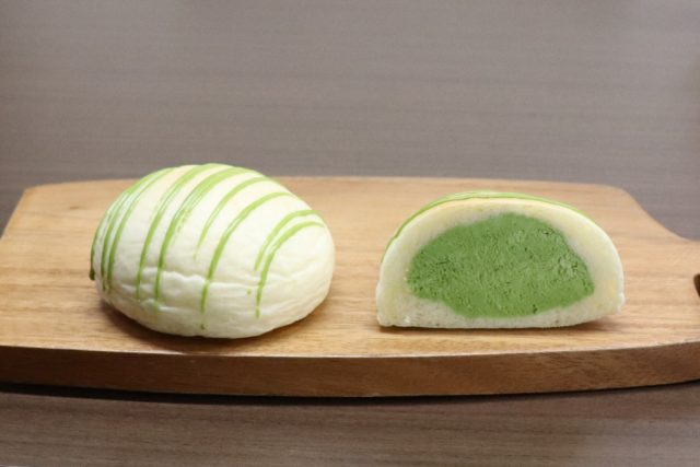 ふわっと軽いパン生地に、ハンガリー産アカシア蜂蜜と京都府・南山城村の抹茶をたっぷりと練りこんだ抹茶クリームを閉じ込めました。上部は抹茶のチョコレートでコーティング。爽やかでほろ苦い抹茶の味わいを感じられる新緑のクリームパンとなっています。