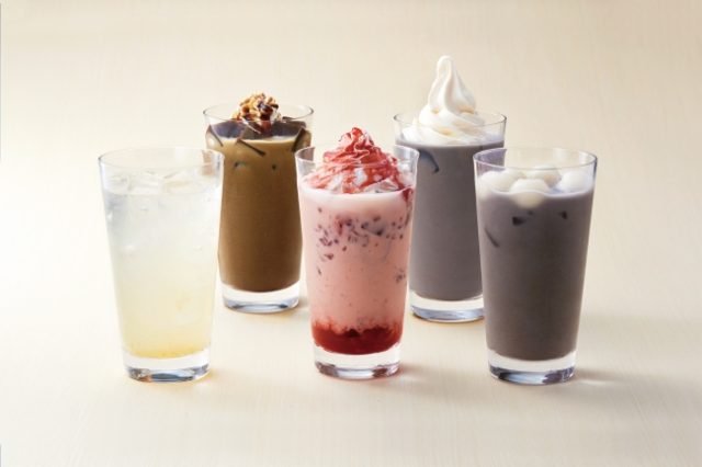 復活の声で再登場しました。香ばしい香りが口いっぱいに広がる濃厚黒胡麻ラテに、ソフトクリームをトッピング。濃厚でとろっとした飲み口の黒胡麻ラテとさっぱり冷たいソフトクリームが好相性です。(写真後列右)
