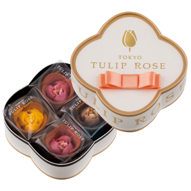 上品で可愛いピンクリボンのパッケージが特長のチューリップローズ。さらに、オープニングの際に登場して完売の人気を博したスペシャルパッケージが期間限定でアンコール登場。可憐なお花型がゴールデンウィークの帰省土産や母の日や父の日のプレゼントにぴったりです。