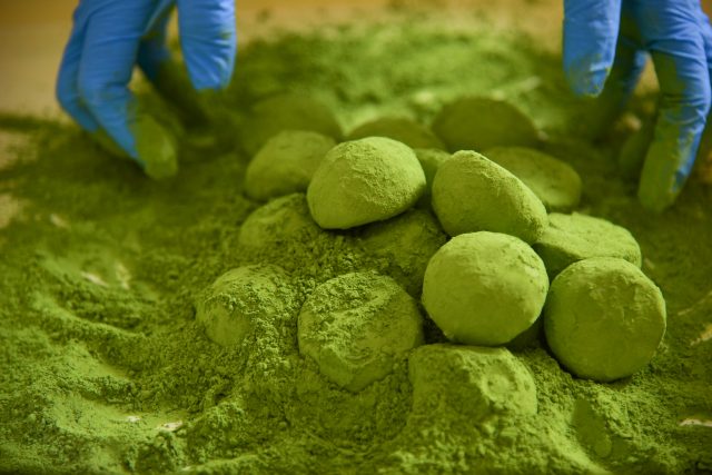 そんな、大和茶の香り高さを伝える良い方法がないかと試行錯誤を繰り返した結果、抹茶大福の濃度の違いで抹茶の香りの違いを直接感じてもらうことに辿り着きました。そして、より美味しく印象に残してもらうために、提供する中でも最も濃い抹茶大福は日本(世界)中で最も濃い抹茶大福へチャレンジしました。