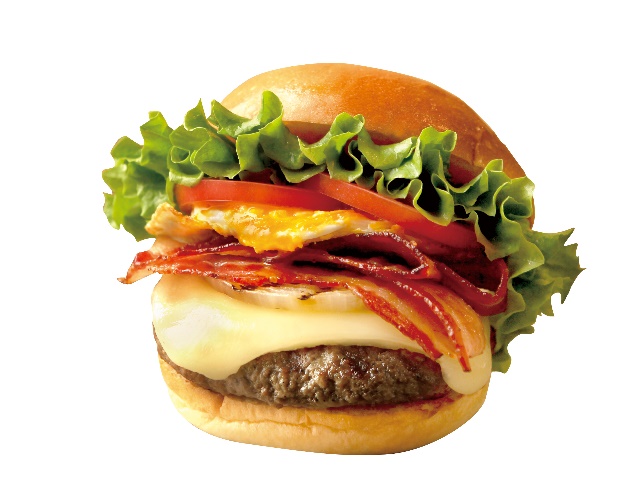 詳細:カリっと焼いたベーコンと半熟の目玉焼きをトッピング。目玉焼きは両面焼きにし、外はカリッと中はとろ~り半熟で仕上げました。新鮮なトマトとグリーンカールもたっぷり入り、それぞれの食材が見事なバランスを見せる王道のハンバーガーとなっています。