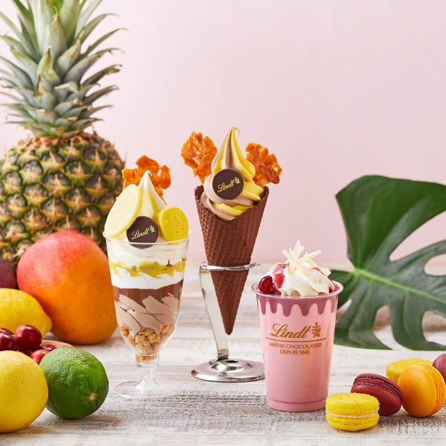 夏限定の「リンツ ソフトクリームショコラ」は、リンツ ショコラ カフェ史上初めて、ホワイトチョコレートを使用したフルーツフレーバーのソフトクリームとなっています。
