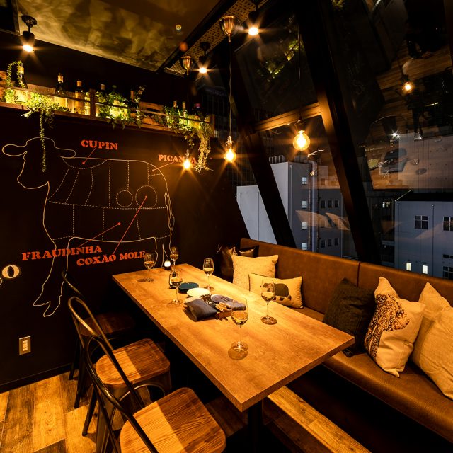 全13種類のシュラスコを、豊富なトッピング&ソースと一緒に野菜で包んで食べる「シュラスコ食べ放題プラン」は、燻製ローストビーフやパルマ産生ハムなどの逸品料理の食べ放題も付いて3,980円~。のんびり自分のペースで楽しめるアラカルトメニューも豊富に揃っています。スーパーフードのアサイーやケールを使った野菜のドリンクもおすすめ。