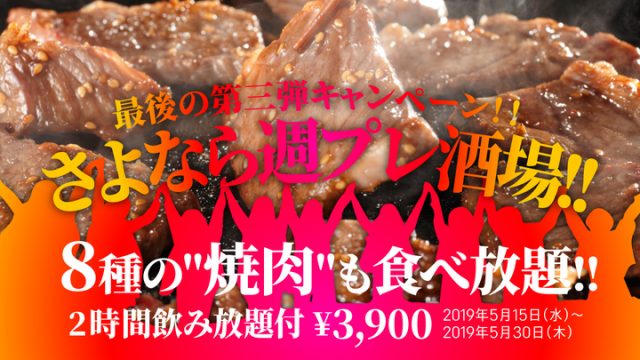 「週刊プレイボーイ」を発行している集英社と株式会社ファイブグループのコラボレーション事業として期間限定で展開してきた『週プレ酒場』が、来たる5月31日(金)を以ってその幕を閉じることになりました。平成の終わり、そして令和の始まりと共にその歴史に幕を閉じる『週プレ酒場』の2年間に感謝を込めて、4月26日(金)より3大キャンペーンを開催します。今回は、最後の第三弾キャンペーンをお知らせします。