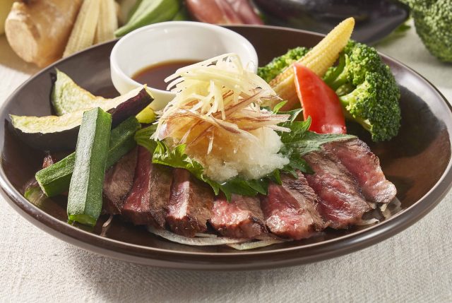 3.たっぷり薬味おろしの国産牛赤身ステーキと夏野菜のグリル 1,699円