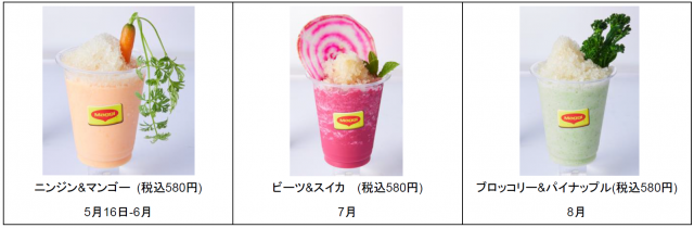 3年目を迎える2019年、全国79ケ所以上のホテルやレストランで採用され、各々で創作されるオリジナルレシピが5月中旬以降、順次提供されていきます。「ネスカフェ 原宿」においては、夏の暑さを乗り切るため、氷そのものをしっかり味わえる新メニューとして、「氷のコンソメ 野菜スムージー」を5月中旬以降、イートインとテイクアウトで提供していきます。同メニューは、「氷のコンソメ」の冷たさと程よい塩味に、野菜や果物の甘みや香りを組み合わせた”食べるスムージー”となっています。