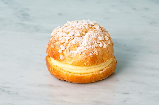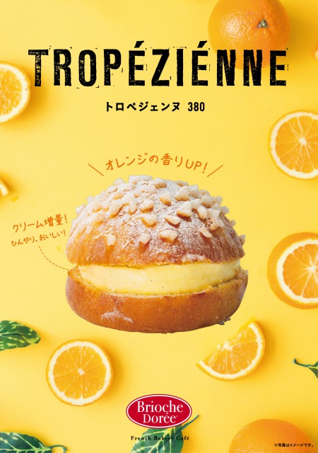 この度、リニューアルした『トロペジェンヌ』は、オレンジの果皮を使用したフレッシュな香りのシロップをフワフワのブリオッシュにたっぷり染み込ませ、生地がしっとり、オレンジの爽やかな香りがアップしました。