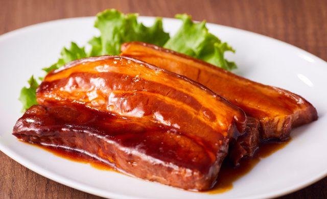 皮付きの豚バラ肉をほろほろっと柔らかくなるまで煮込んだ「トンポーロー」はとろける食感です。