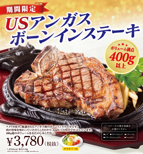 『US産アンガス ボーンインステーキ』 サラダバー付 3,780円(税抜)
