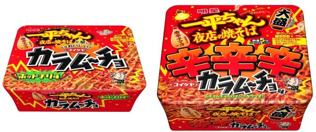 株式会社湖池屋は、辛味スナック「カラムーチョ」において、明星食品株式会社のカップ焼そば「明星 一平ちゃん夜店の焼そば」とコラボレーションし、「明星 一平ちゃん夜店の焼そば カラムーチョホットチリ味」が2019年6月24日(月)に、「明星 一平ちゃん夜店の焼そば 大盛 辛辛辛カラムーチョ味」が2019年7月8日(月)に、明星食品株式会社より発売されます。